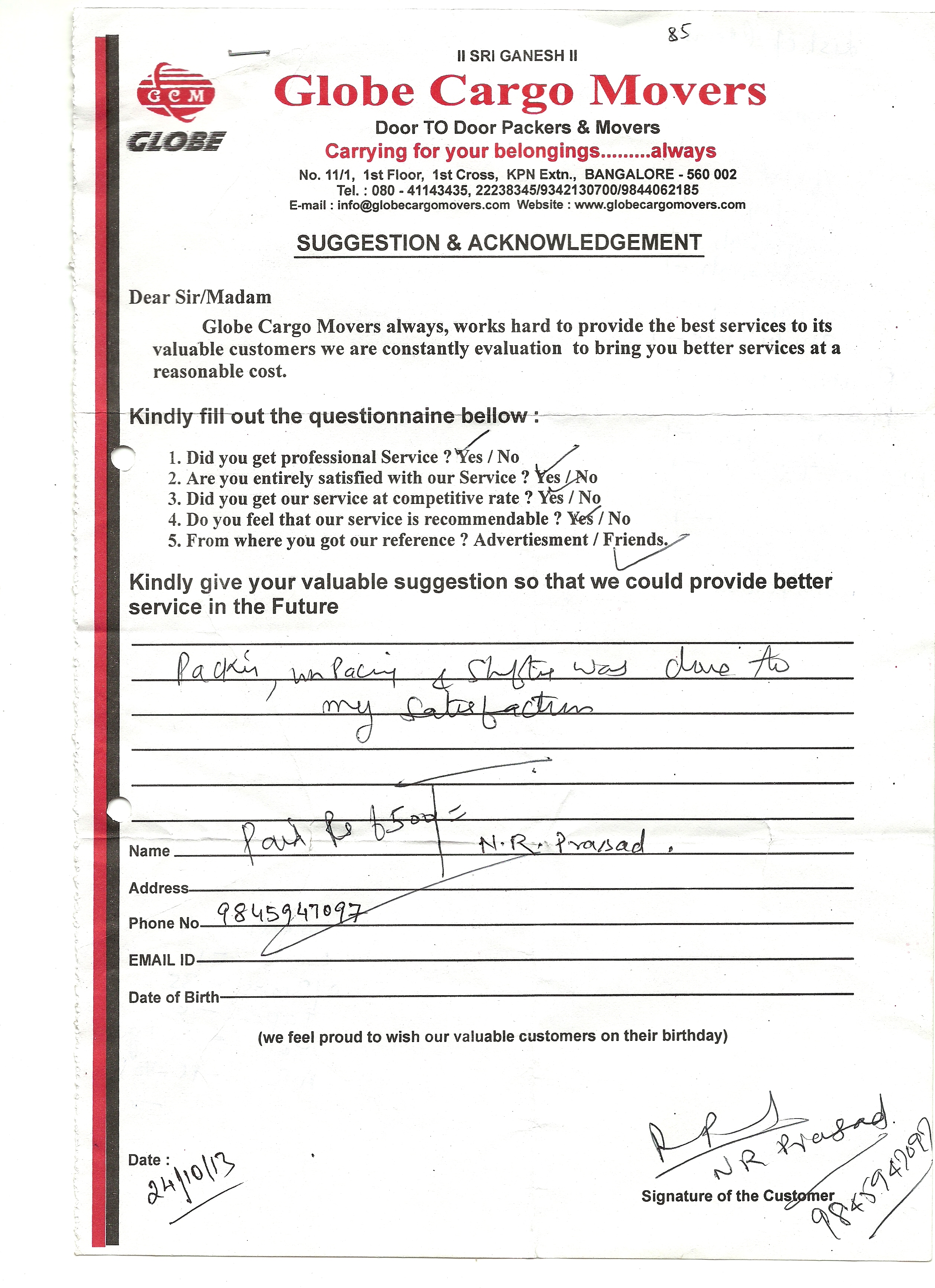 Welcome to Globe Packers and Movers Bangalore! We ensure safe, on-time shifting for homes, offices, cars, and bikes. Please share your moving details —